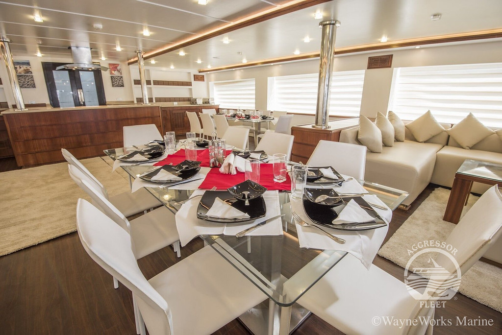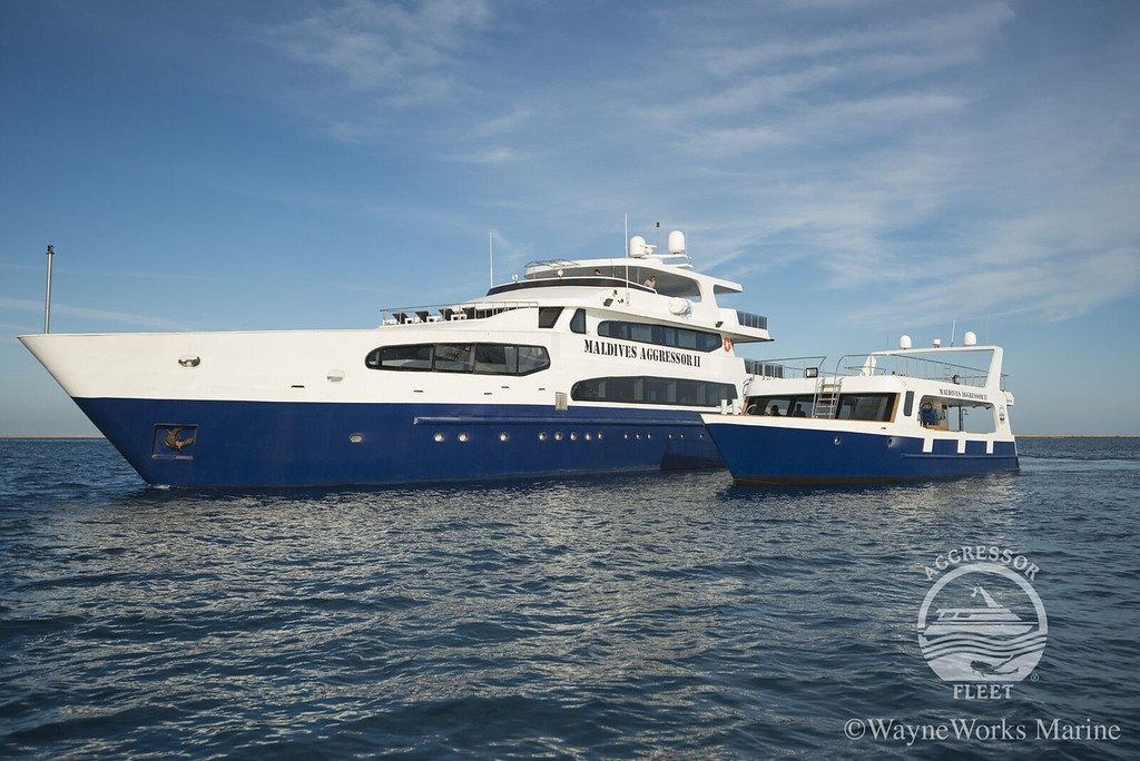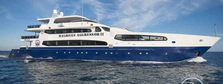 Maldives Aggressor II is a luxury liveaboard offering world-class diving, featuring spacious cabins, expert guides, and thrilling encounters with manta rays, whale sharks, and vibrant coral reefs.