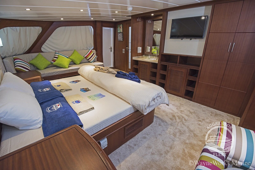 She accommodates 22 passengers in 11 staterooms; 8 staterooms with single beds, 2 staterooms with Queen size beds and 1 stateroom with a king size bed.