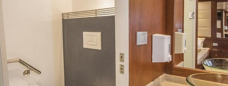 • A comfortable stateroom with two twin beds. Private head and shower, porthole windows individual climate control, monitor with media player and hair dryer.