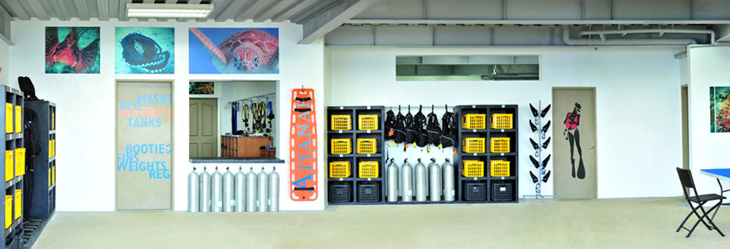 The Dive Center is complete with gear and tools to suit all diving needs. It sits on more than 120 sq. of a well-designed space that assists in the efficient flow of divers departing and arriving at the resort during peak operations.