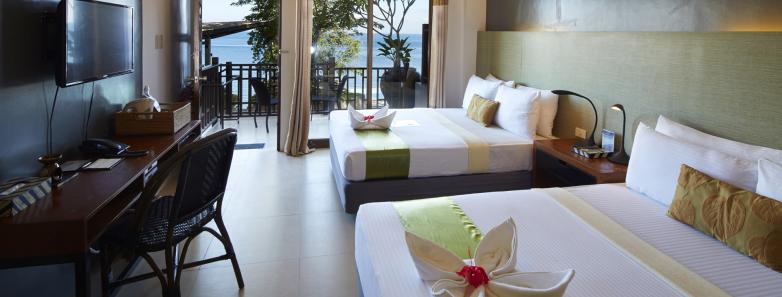 All rooms in the main building now feature brand-new Google TVs, while the Suites include in-room Nespresso machines for added comfort and convenience. Guests can also enjoy upgraded internet connectivity for a more reliable and seamless online experience. Each room is well-furnished with modern resort amenities and opens onto a private balcony, overlooking the sprawling manicured lawns below and the sparkling sea beyond.