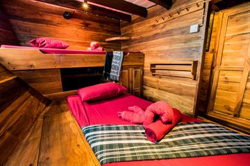 Akomo Isseki has 4 twin cabins. These cabins boast large beds and are naturally vented. Amenities include wardrobe, computer/gadget desk, portholes, fan. Shared bathroom facilities with modern bathroom appliances and traditional handcrafts available.