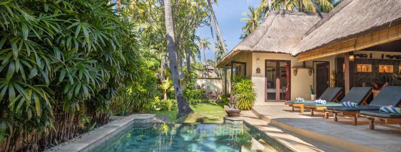 Bahari 1 & 2 are beachfront villas at the western end of Alam Anda, each with a private pool, sea entrance, and lush garden. Featuring two bedrooms with private bathrooms and spacious covered verandas, they offer an open-air living experience.