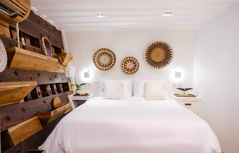 The Family Room includes a queen-sized bed, a convertible sofa bed, air-conditioning, an en-suite bathroom, and carefully curated décor honoring Indonesian history.