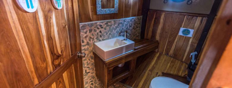 Amalia boasts 5 cabins made up of 2 x Double Ensuites, 2 x Twins, and 1 Family Cabin, with the latter cabins sharing a bathroom. Each cabin is naturally ventilated and appointed with plenty of storage.