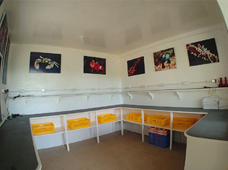 Enjoy the convenience of Amun Ini's SSI dive center and facilities, including a dedicated camera room with workstations for photographers. Store your dive gear in a lockable area or rent a set of equipment from the shop. Listen to detailed dive briefings in a spacious and comfortable common area. Amun Ini provides air and has Nitrox available for Nitrox certified divers.