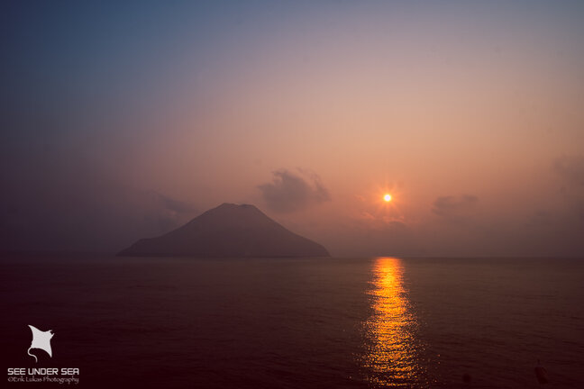 The volacano at Barren island spewing smoke and ash which afforded amazing sunsets