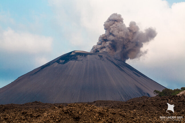 That afternoon, we returned to the lava flow, this time motoring into a mini-fiord extending several hundred meters into the shoreline. Underwater, the outer edges offered a view of a steep boulder-strewn drop-off, where mantas make regular appearances. The main attraction, however, is in the shallows, where a huge garden of pristine hard coral thrives where molten lava flowed as recently as 1995. The easy conditions allowed for a long, leisurely dive, but for many the best part was yet to come, as we watched the volcano launch several successive plumes of smoke and ash. And, for those who werenât busy capturing images of the event, there was even a natural geothermal hot tub... not a bad way to relax after a dive!