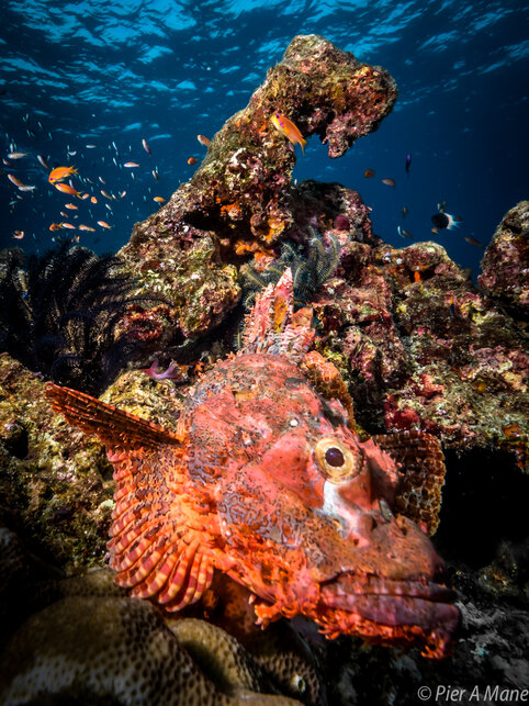 Left: Nice coral biodiversity in the Andamans Right: A scorpionfish poses for the camera