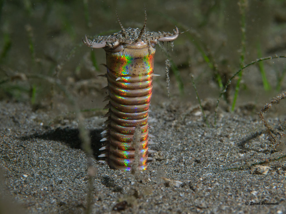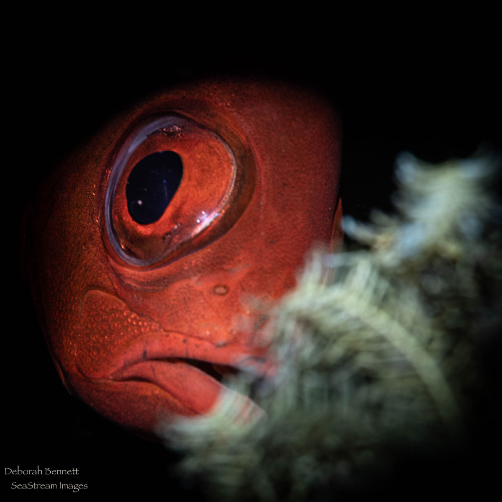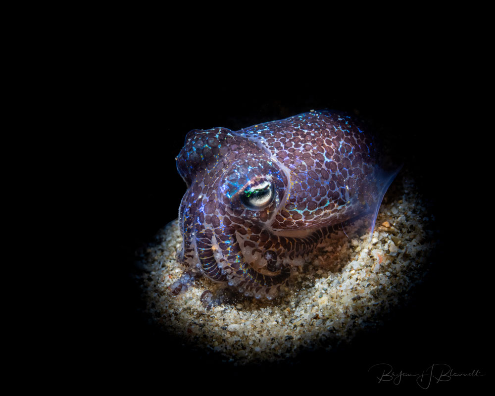 Diving in the late afternoon, we were able to witness all the twilight activity on the reefs and in the sand with the fourth dive of the day generally becoming a night dive. We were fortunate to see several bobbit worms, stargazers and coconut octopus - one beautiful specimen with eggs on view inside her home of broken glass. Many guests opted to take advantage of the opportunity to do a couple of blackwater dives instead of the afternoon dives, witnessing for themselves the often strange looking pelagic and larval creatures that appeared from the blackness in the beams of the dive lights. Several people managed to photograph a Wonderpus on one of these late night dives and some other finds were not identified until we were able to take a good look at the shot on screen the next day.