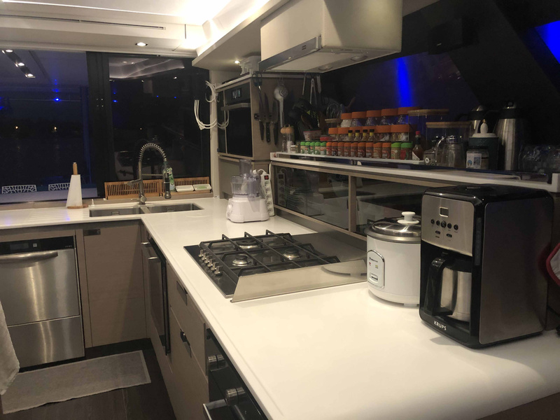 The hostess is responsible for all meals and service aboard. Guests are served table water and lemonade throughout the day, but they can also purchase mineral water, sodas, and alcohol at the on-board bar.