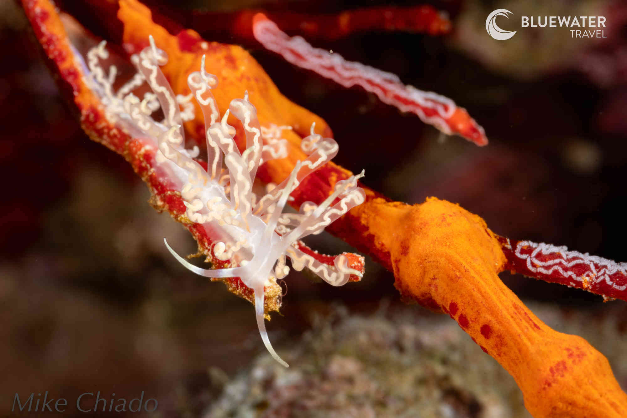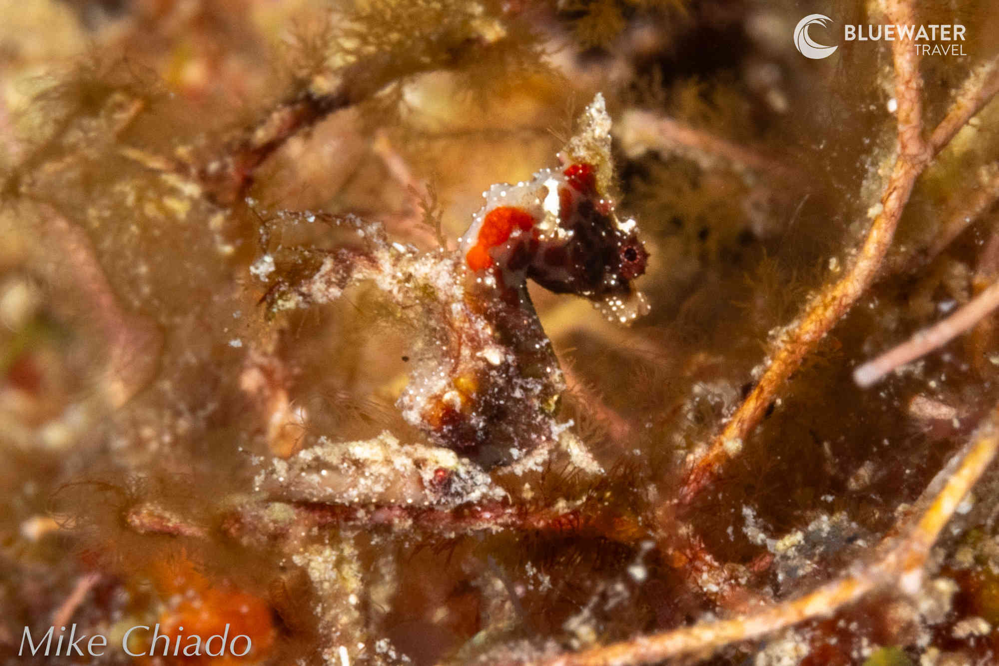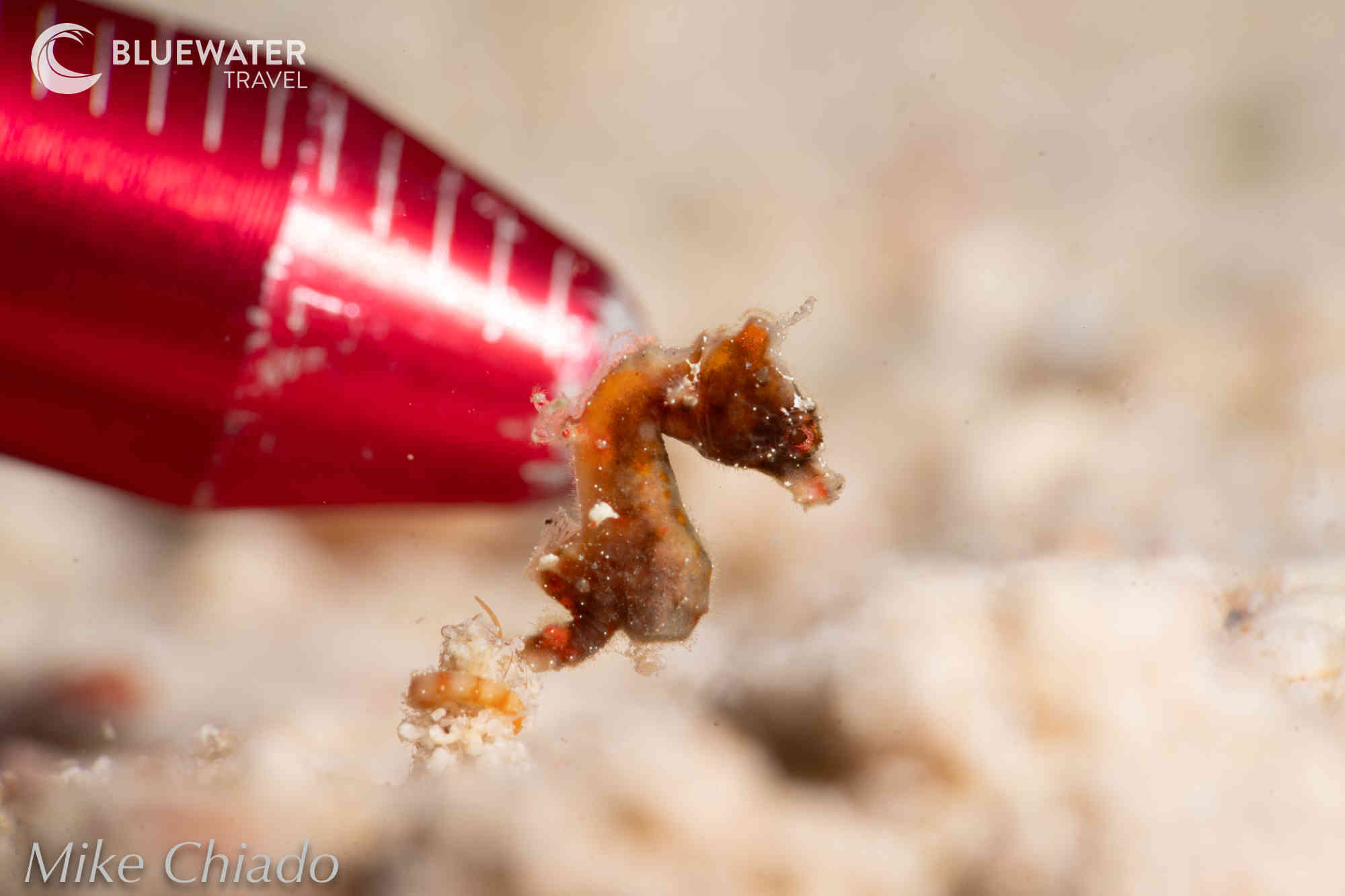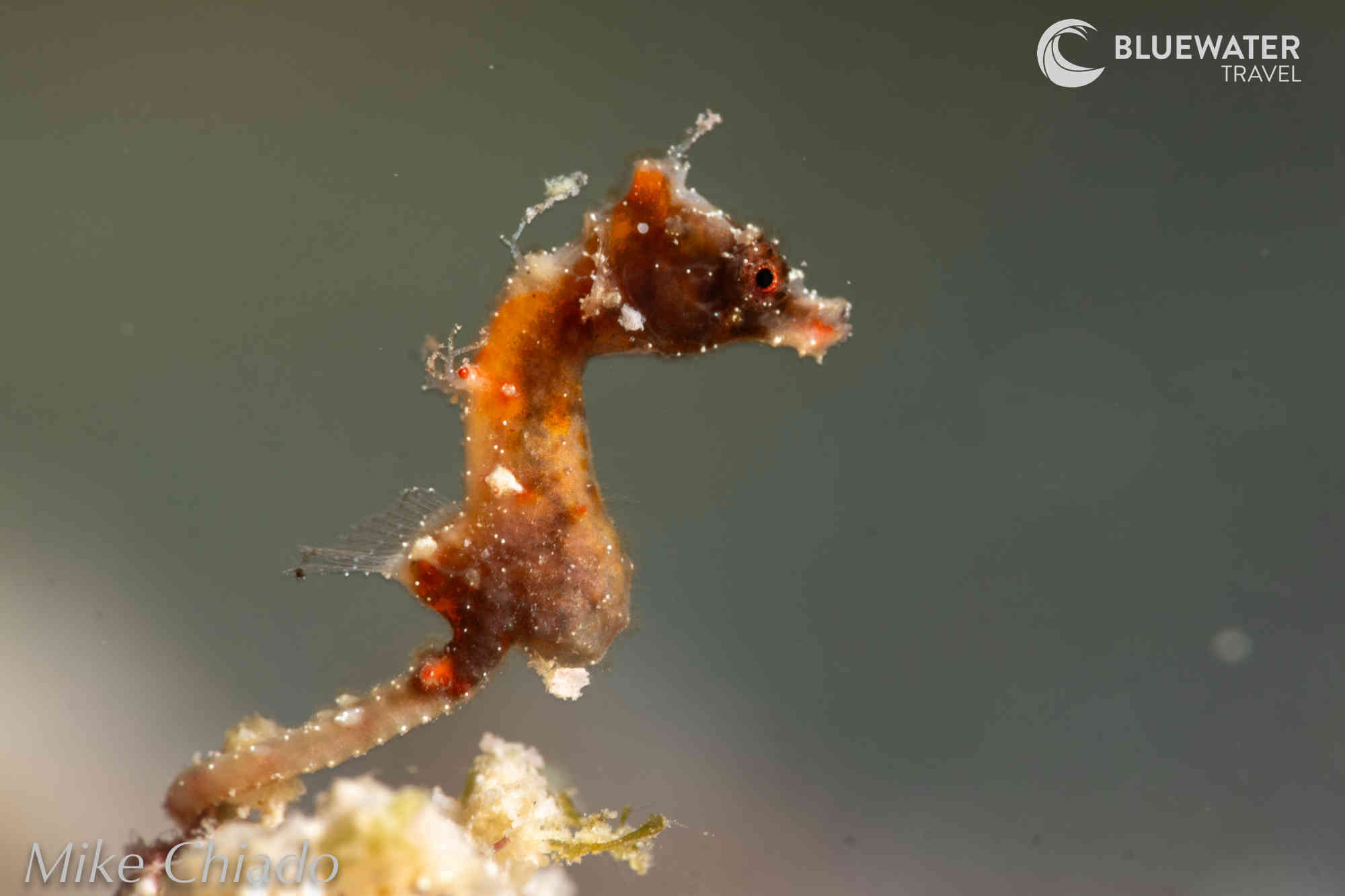 The Nai’a Cruise Directors, Bel and Mike, who’ve led trips on the boat for the last three years, were masters of anticipating our questions and had us squared away quickly. They told us that the season was changing with warmer waters arriving and that we’d see fish that hadn’t been seen in a while. As we would find out in the coming days, unexpected encounters included Pontoh’s pygmy seahorse, ghost pipefish, endemic red-tailed flasher wrasse, and manta rays.