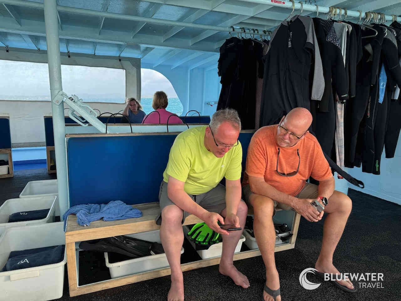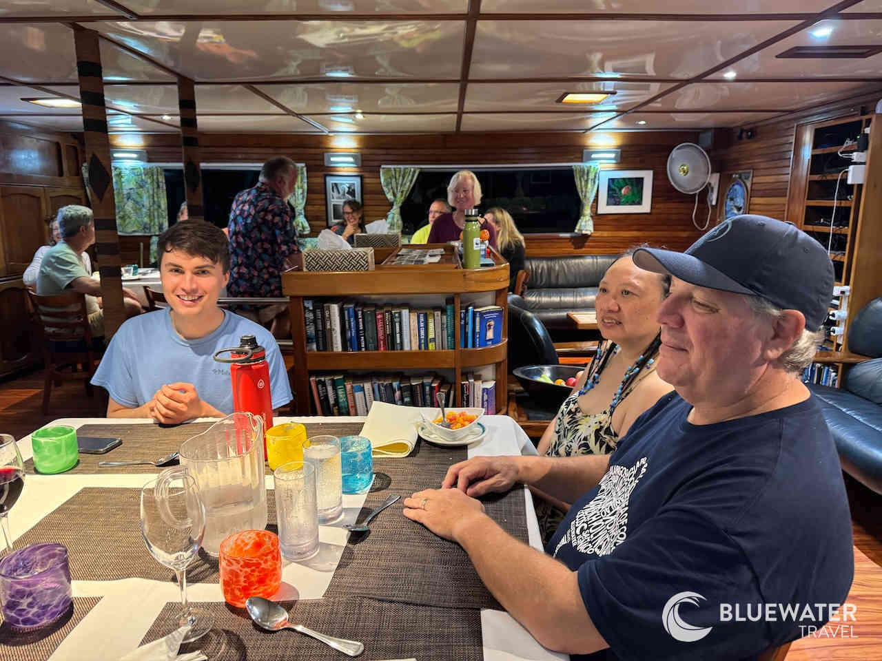 Following the first morning dive, a cooked breakfast was served at 8:30 am, based on orders placed the evening before. The remainder of the day’s schedule would be the same throughout the trip: second dive at 10:00 am; lunch at 11:30 am, third dive at 1:00 pm, snacks and workshop at 2:30 pm, dive four at 4:00 pm; dinner at 6:00 pm and the optional night dive at 7:30 pm. Delicious meals and great dives filled the day.