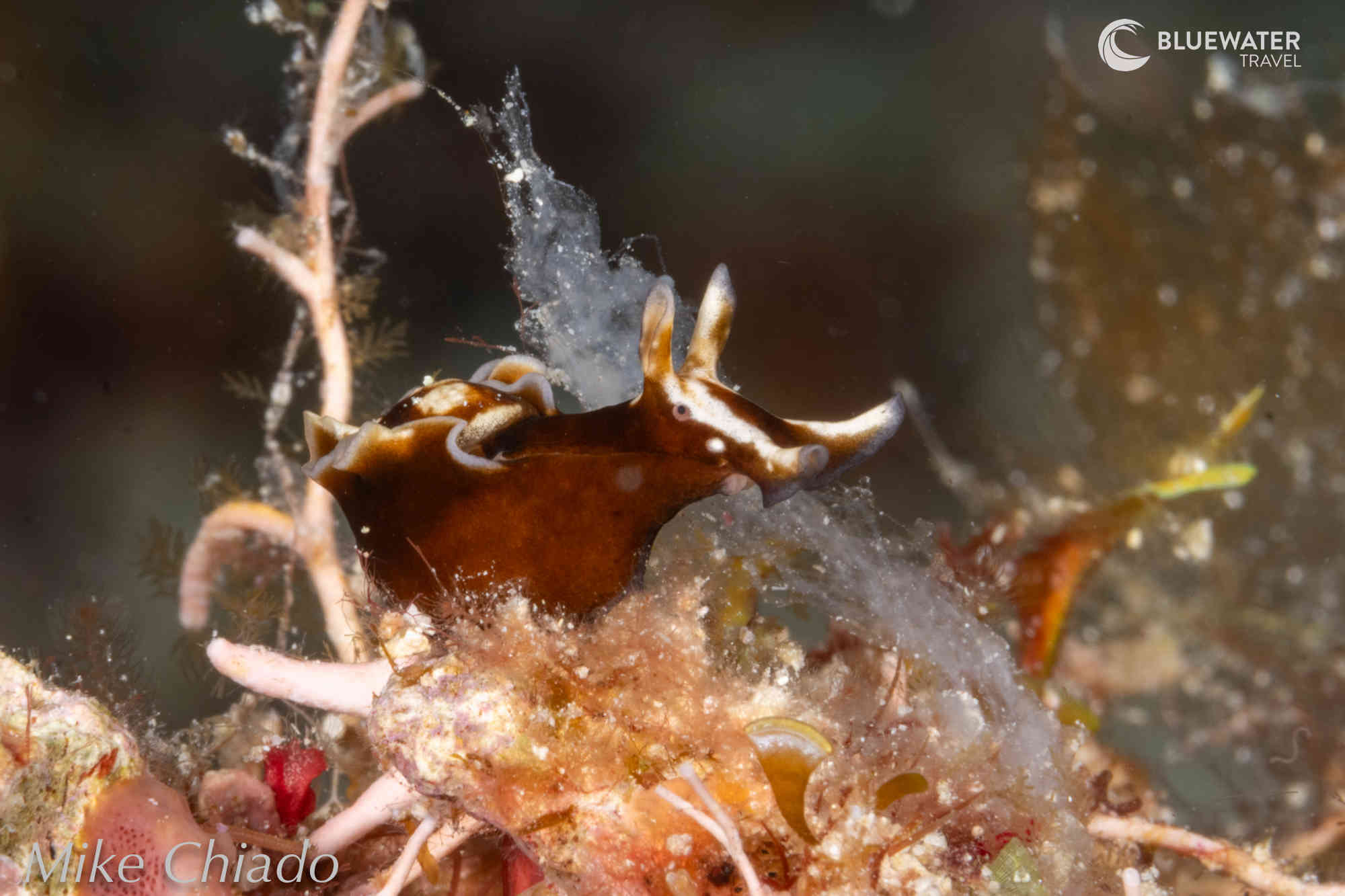 Overnight, the Nai’a moved to a favorite manta ray spot. With the changing of the seasons, the manta interactions were less than expected. The morning dives provided one group with a 20-minute visit from a manta named Clarita and a quick pass-by from a new manta, which we named Manta Del Ray. There were also grey reef sharks, turtles, big tunas, and five humphead wrasse hanging out together. The afternoon dives provided the option for macro photography at Vatu Vai. Photographers found three Pontoh’s pygmy seahorses, freckled sea hares, semicircle angelfish, decorated goby sea spiders, and blue dragon nudibranch, as well as several other nudies.