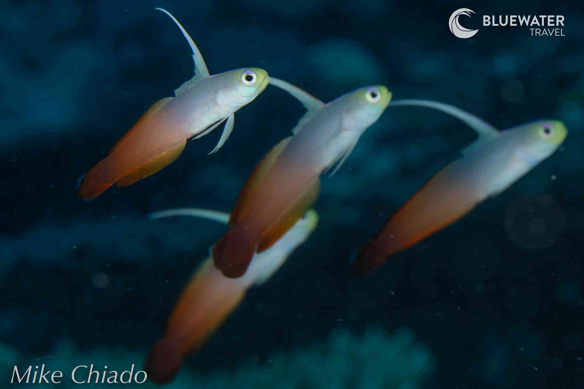 The creatures spotted in the southern area include golden mantis shrimps, leaf scorpionfish, ribbon eel, whitecap shrimp gobies, square spot anthias, decorated dartfish, Morrison’s dragonets, nudibranchs, ornate ghost pipefish, red-tailed flasher wrasse, grey reef sharks, barracudas, sweetlips and an absurd number of fusiliers and anthias.
