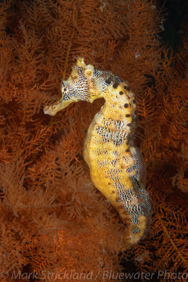 Cousins Rock: We awoke near this rocky islet to the welcome sight of blue water after several days of soupy conditions, we were ready for some good visibility! As we back-rolled off the panga one last time, we were pleasantly surprised not only by the water clarity, but also relatively warm temperature. And unlike most dives on this trip, we had not been given a time limit, so the pace of the dive was very relaxed. Fortunately, there was also plenty to see as we followed the islets perimeter, exploring the moderate slope. The water column was filled with schooling damsels and creolefish, as several king angelfish and Mexican hogfish made their way along the ledge lines. Overhead, an Eagle ray and several turtles soared past, while a pair of Galapagos sharks patrolled in the distance. The real highlights of the dive were not revealed until the end, however, when Ivan and Daniel pointed out a cute juvenile frogfish and several photogenic Pacific Seahorses among the branches of black coral. Like any great experience, we hated to see it end, but what a perfect note to finish on not only had we had close encounters with all of the big animals that Galapagos is so famous for, but nearly all of the special critters and endemic species as well. As Galapagos diving goes, it would be hard to imagine it getting much better!