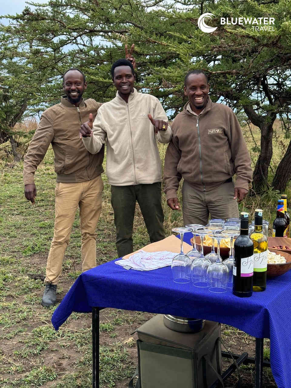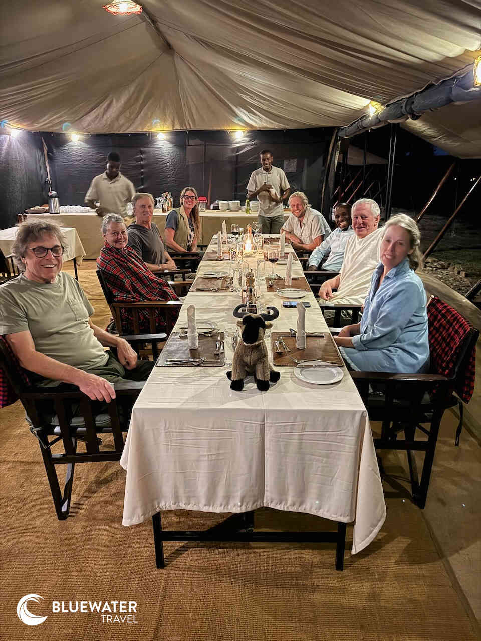 We enjoyed our final night's dinner with a surprise champagne toast. The staff at the camp are marvellous and the Esirai Migration Camp was a 5-star experience.