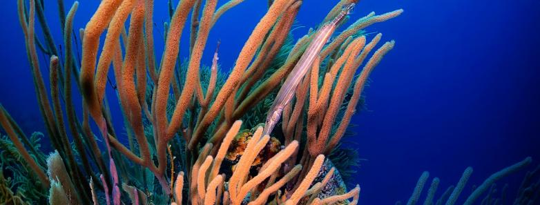 Aruba hosts a wide range of marine habitats, from coral reef systems and mature seagrass fields to mangroves and artificial reefs. This encourages a great diversity of marine life and some unique encounters while scuba diving Aruba. Seahorses, loggerhead, and green turtles are commonly spotted weaving through the seagrass beds on the northwestern coast, while the tropical reefs host a myriad of small fish species. Huge brain and mountain corals adorned in tube sponges hide moray eels, lobsters, and loitering grouper, while schools of angelfish add colorful decoration. Mantas, stingrays, and sharks are sometimes seen around the outer reef sites.