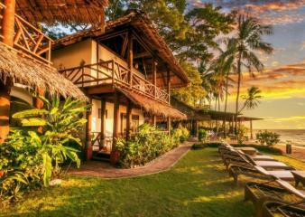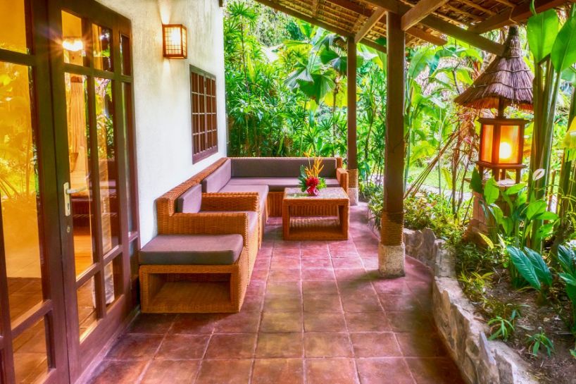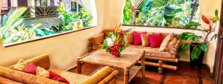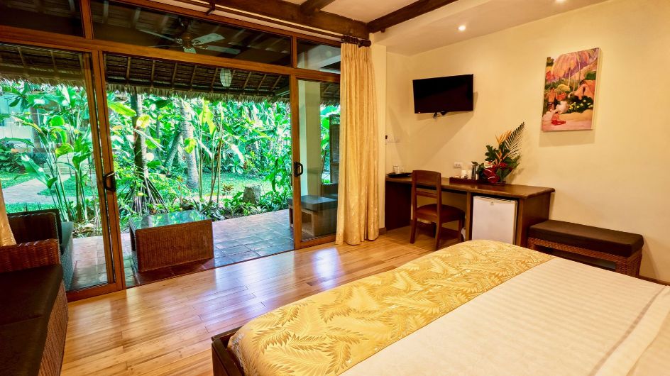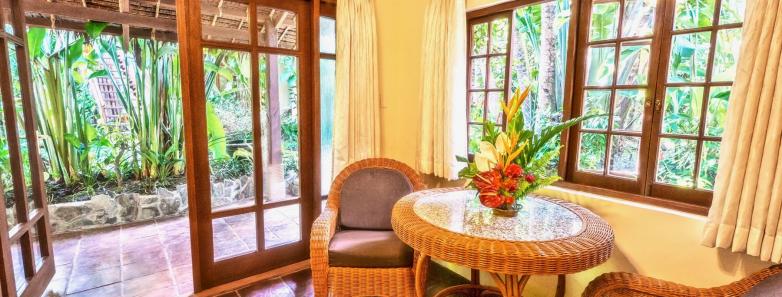 Spacious suites surrounded by lush gardens, 1 king (or twins), ensuite with shower, safe, A/C, ceiling fan, cable TV, minibar, refrigerator, and coffee/tea maker.