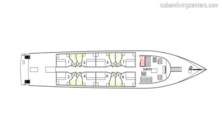 Divers booked on the Avalon will board at the port of Jcaro. The trip to Jardines de la Reina lasts 5 hours. Once the Avalon arrives at Jardines de la Reina, it will remain stationary and tender boats will take divers to sites within a 20-minute ride.