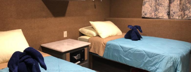 The Standard Plus Cabin provides extra space, featuring double or twin beds, air conditioning with an individual thermostat, and a private bathroom.
