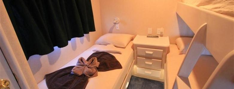 The eight Staterooms, located across the main, lower, and middle decks, feature comfortable beds, air conditioning, private bathrooms with hot water, a TV, and a telephone for a luxurious stay.