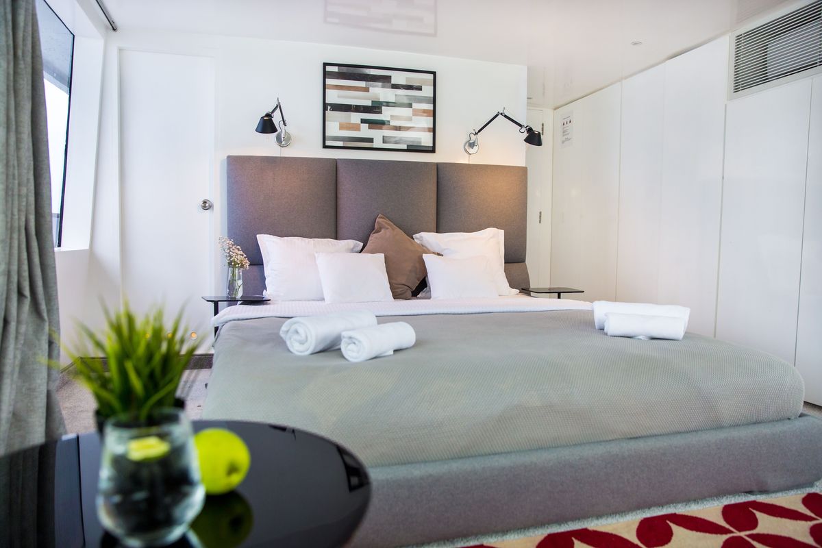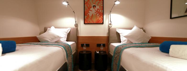 TheSuperior Twin Room is located on the lower deck, these versatile twin or single cabins offer modern amenities, private bathrooms, and a comfortable retreat.