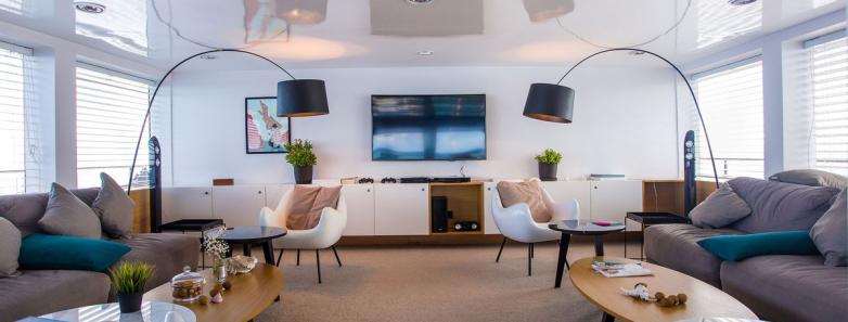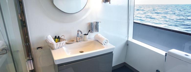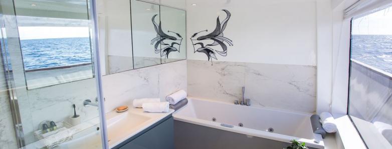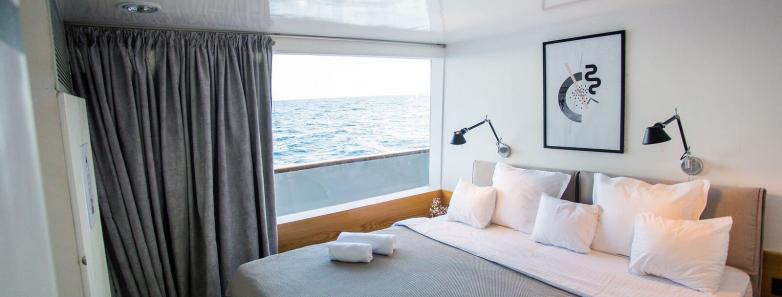 The 9 cabins consist of 6 Superior, 2 Ocean View Jr and 1 Ocean View Master. All cabins offer modern fixture and fittings and luxurious amenities, with individually controlled AC, en-suite bathrooms and storage space.