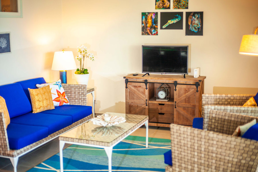 Indulge in spacious 2 or 3-bedroom luxury apartments with stunning Caribbean Sea views, private balconies, and versatile bedding options for ultimate comfort.
