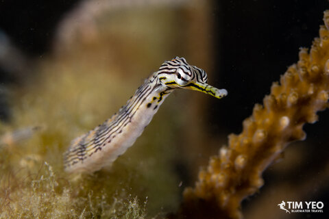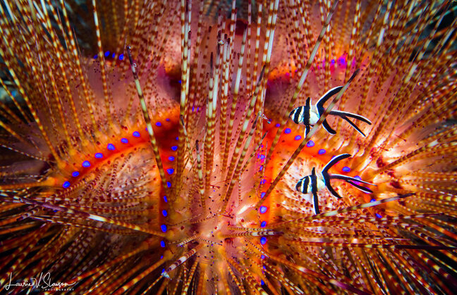 Lembeh Strait is all black sand diving, allowing for dramatic pictures. There are a lot of fish and critters that are special to Lembeh, like the Banggai Cardinalfish, Denise's Pygmy Seahorse and the Hairy Ghost Pipefish.