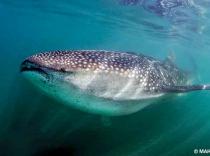 "Whale sharks in La Paz have the wonderful distinction of being predictable but wild. No one is feeding these sharks! Because of this, they have very little interest in people, and it can be a hectic affair trying to keep up with their breakneck speeds. Don't get me wrong, when you're in the water with them, they look slow and majestic. But when something the size of a bus is being majestic, they're really traveling at speeds much faster than you can swim. So it can be better to be smart than physical - position yourself where you think the whale shark might go next and be careful not to get in its way. With any luck, you'll find yourself in a surreal world where the celestial patterns across the whale's back cruise under you as the hot sun and desert mountains shine above." - Nirupam Nigam, Editor-in-Chief Underwater Photography Guide