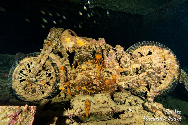 With the main superstructure at a depth of only 30ft, the Fujikawa Maru is a great recreational dive, and Chuuk Lagoons clear waters and lack of current means that many of the intact wrecks and artifacts scattered across the sea bed are free from silting. The whole area has a sense of being frozen in time, a ghostly window into the past.