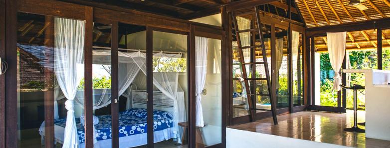 Overlooking the ocean above Padangbai, Bali, the Bloo Lagoon offers twenty-five unique villas, designed with open spaces that flow indoors to outdoors. Varied designs are suitable for singles, couples and families. Facilities include space for workshops and conferences, as well as a restaurant and spa just above the ocean.