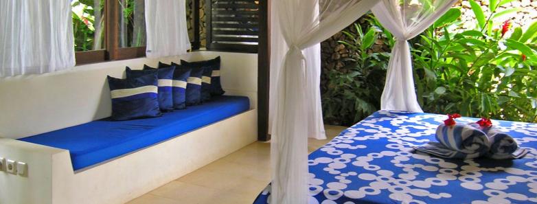 [Read More: Bali Dive Travel Guide]Twenty-five unique villas are designed with open spaces that flow indoors to outdoors. Varied designs are suitable for singles, couples and families. One, two and three bedroom villas are equipped with kitchens, linens and tableware. Enjoy outdoor bathing surrounded by lush vegetation or sip a drink while sitting under an umbrella or lounging on the swimming pool shore.