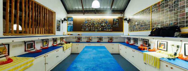 Buceo Anilao's dive center is a complete PADI dive center with boats, instructors and dive masters. They also have a spacious camera room with more than 18 stations with Air Guns.