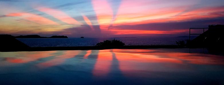 - 10 Exclusive Deluxe Rooms, 45 sqm, Sea/ Sunset View, with terrace, air conditioning, Ceiling Fan, Minibar, Kettler, Safe. 2 double beds and 1 individual bed.