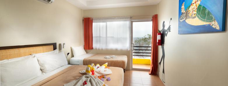 Enjoy a comfortable room equipped with 2 double beds and 1 single bed, air conditioning, and a modern bathroom. Take in gorgeous sea views from your private balcony or terrace.