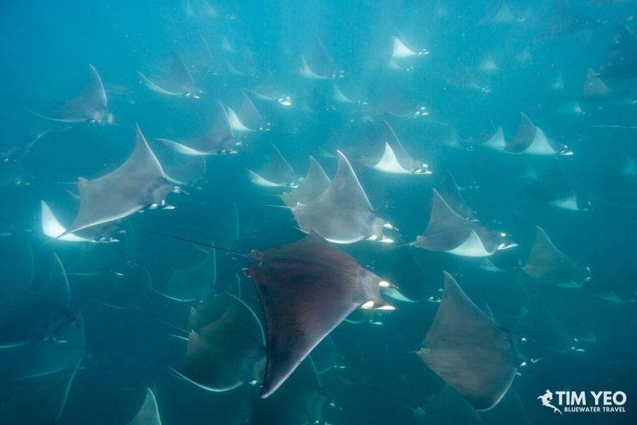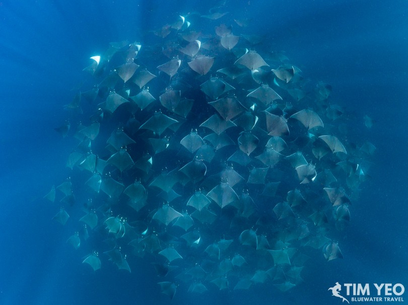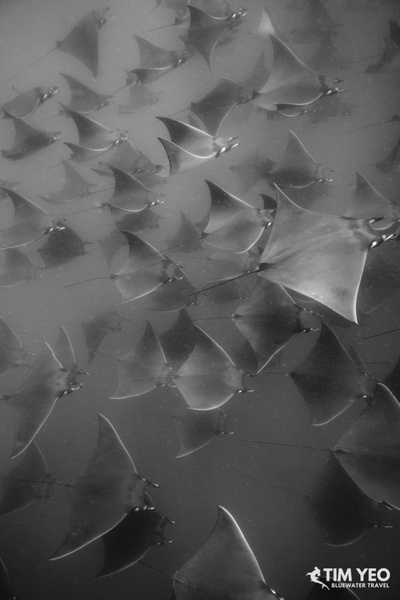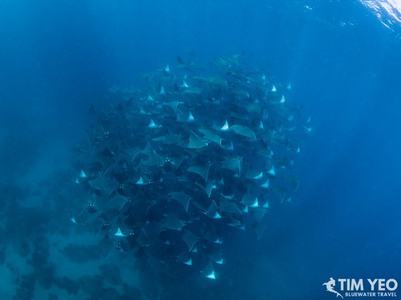 Another fantastic experience is swimming with the huge schools of mobula rays that frequent these waters. If there are reports of mobula rays in the area the boat will head out specifically to look for them. Mobula munkiana, also known as Munk's devil ray, typically swim in schools ranging from dozens to hundreds and are often spotted when they leap out of the water! Because the schools dont typically travel very fast, snorkelers can easily spend time in the water free diving and photographing them.