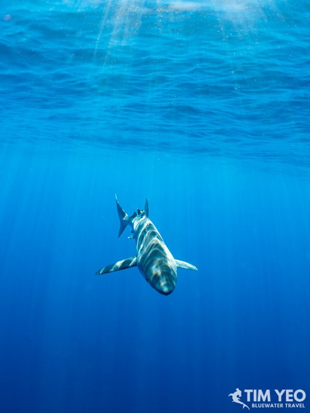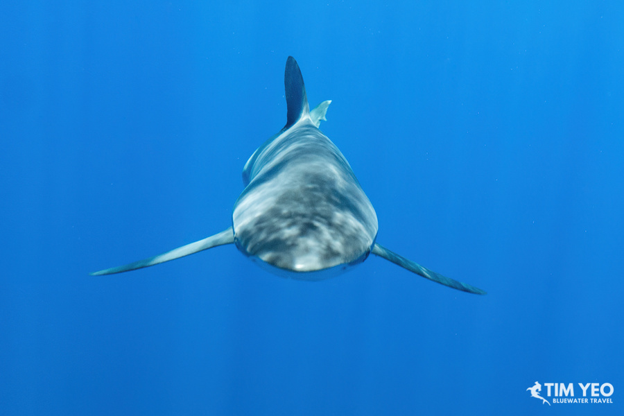 One of our favorite expeditions is a trip to one of the deep offshore pinnacles to chum the water and draw in pelagic sharks. This attracts elusive species like the extremely cute blue shark and the shortfin mako, known as the speed demon of the ocean. Guests enter the water in snorkeling gear and get close enough to photograph these awesome predators, an opportunity rarely encountered while scuba diving. There is also a good chance of spotting other pelagic shark species such as silky sharks and smooth hammerhead sharks.