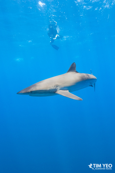 While a combination of fish blood and guts are dropped into the water to attract the attention of these curious sharks, the goal is not to feed the sharks or to change their natural behavior. Once they arrive, a tuna head is added to the mix to keep their interest so that snorkelers can spend some time in the water with them. The sharks arrive of their own accord and leave whenever they want.