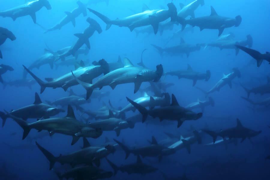 With 592 species of fish, 32 species of sharks, 4 species of turtles, 7 species of dolphins plus penguins, mola molas, orcas, mantas, and the sole marine iguana on the planet, only in Galapagos can you dive with such a sheer abundance of species and so many sharks. Darwin and Wolf have the largest biomass of sharks in the world, 17.5 tons of sharks per hectare (2.47 acres). Only in Galapagos can you dive with pregnant Whale sharks this big. Add massive schools of pre-historic-looking Hammerheads, the largest Galapagos sharks anywhere, and, sorry everywhere else, only Galapagos truly is the sharkiest place on the planet. And yes, the best dive sites in Galapagos are only accessible from a liveaboard.