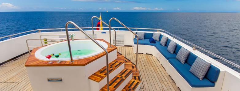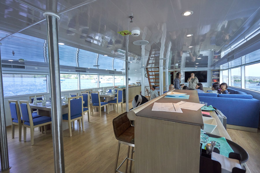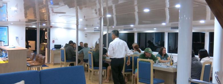 Calipso provides alight snack prior to your first dive, then a full breakfast after the dive. Breakfast, lunch, and dinner are served buffet style for all you can eat. They serve international and Ecuadorian dishes prepared with fresh local produce and seafood. There is a snack and hot beverage after each dive. Fruits, candies, and snacks are available all day.A variety of teas, coffee and fresh juice is available all day, and the salon bar has a wide variety of wines, beers andspirits available for purchase.