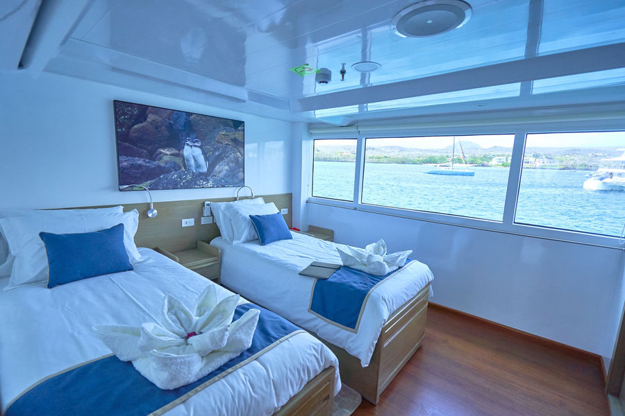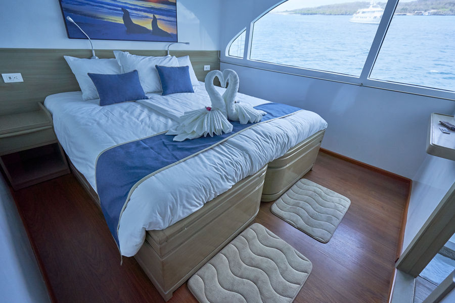 Calipso Cabin OverviewCalipso has 6 double cabins on the upper deck and 2 double cabins on the main deck. All of the double cabins are convertible to one bed. Double cabins have panoramic windows, as well as a window in the bathroom. Cabins have climate control, TV, hairdryer, closet, and an ensuite bathroom.