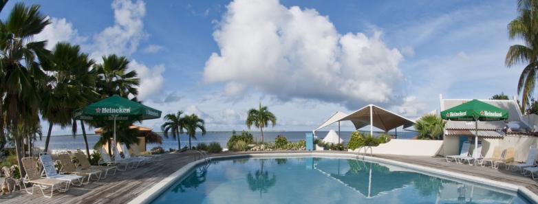 Unwind in our spacious, air-conditioned rooms featuring two queen beds, a refrigerator, and a private balcony with breathtaking views of the pool and Caribbean Sea.