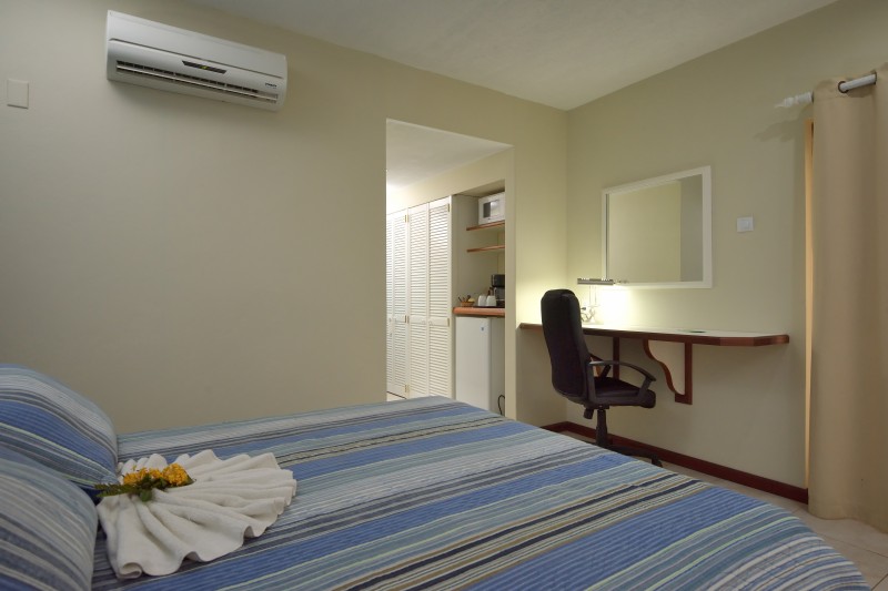 Features a King bed , air conditioning, desk, cable TV, refrigerator, microwave, coffee maker, full bath with tub, and a private patio overlooking the freshwater pool.