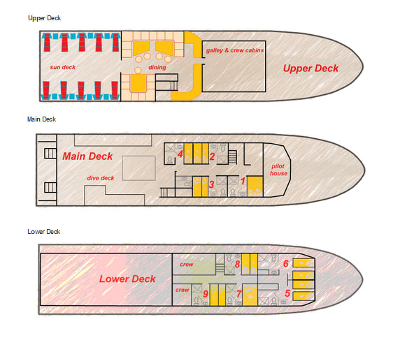 Evening meals usually consist of lots of fresh vegetables, rice, pasta, chicken, beef, turkey, pork, and fish. Breakfast is the usual fare of eggs, bacon, pancakes, French toast, muffins, danish and fresh fruits. Lunches vary from soup and sandwiches, burgers, pasta, assorted salads, and quiche. Homemade baked bread, cookies, and brownies are offered between dives. If you have any dietary restrictions or requests, please indicate so on your application form. Please note that specific brands of drinks, dressings, and foods are often unavailable in the islands and that it can be very difficult to find low-fat, gluten-free, or soy products, fresh fruit, fish, and other items common elsewhere.