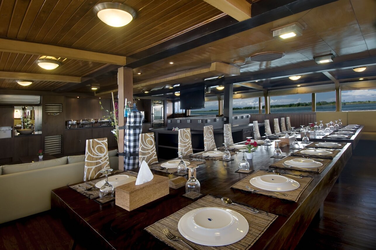 The Cheng Ho liveaboard has 14 cabins which can accommodate up to 24 passengers. The cabins have a private bathroom, basin, hot & cold shower, and air conditioner.