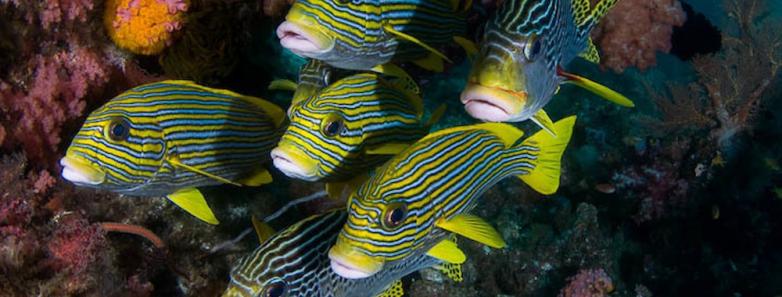 In Komodo (now one of the new 7 wonders of nature), expect exhilarating drift diving, pelagics as well as critters, hot and warm water, and even dive in the shadow of an underwater volcano. Alor (best-kept secret in diving), offers unexplored coral gardens and untouched reefs, rhinopias, anemones and many unusual critters, plus an active volcano which erupts every 30 mins. In Maluku, explore a reef teeming with hundreds of sea snakes and look out for incredibly rare critters (if lucky, the psychedelic frogfish) and dive one of the deepest seas in the world (Banda). Raja Ampat is the epicenter for biodiversity, at the center of the Coral Triangle, home to the most colorful, pristine, and photogenic soft coral reefs, as well as walking sharks, mantas and pygmies.