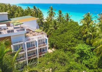 Dhiguveli Maldives is a minutes walk away from the long stretches of white sandy beaches, dedicated to provide you the ultimate local experience. This hotel has cosy modern rooms with air conditioning and free WI-FI would make you feel right at home.