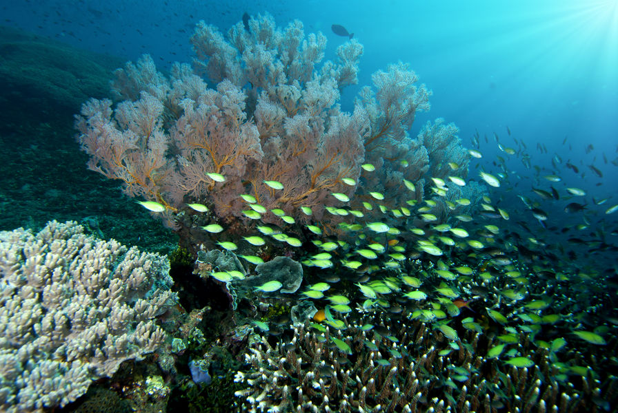 Diving in Raja Ampat is characterized by its incredible diversity, featuring an amazing array of medium to large size fish, good macro, and great hard and soft coral reefs, not to mention a number of muck and mangrove sites. The water temperatures range around 89F (31C) all year long, which means divers barely need a wetsuit.